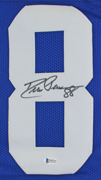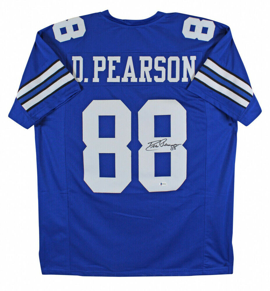 Custom on-field style jersey. Everything is sewn on, size XL. Hand-signed by Drew Pearson.The lot / autograph(s) includes an official Beckett Authentication Services serially-numbered hologram and matching COA for authenticity purposes. The signing of this item was witnessed by Beckett.Authentication: Beckett COA