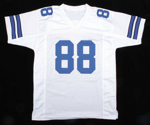 Custom on field style jersey with everything sewn on size, XL. Jersey has been hand-signed in silver paint pen by Drew Pearson. The lot / autograph(s) includes an official James Spence Authentication (JSA) hologram and matching COA for authenticity purposes. The signing of this item was witnessed by JSA.Authentication: JSA COA