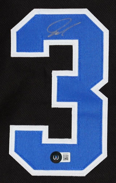 Custom on-court style jersey. Everything sewn on, size XL. Hand-signed by Jeremy Roach (Duke Blue Devils, Baylor Bears).The autograph includes an official Beckett Authentication Services serially numbered hologram for authenticity purposes. The signing of this item was witnessed by Beckett.Authentication: Beckett Hologram