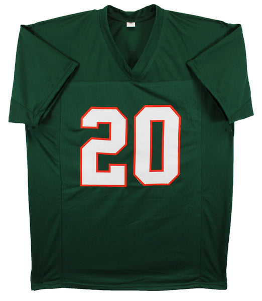 This Autographed Green Pro Style Jersey has been Personally Signed by Ed Reed of the Miami Hurricanes. This item is 100% Authentic to include a hologram by Beckett Authentication Services. This item will come with an affixed Beckett Authentication Services (BAS) authentication sticker, which includes a scannable QR code to verify authenticity. Please note that Beckett no longer provides serial-numbered COA cards, and the attached BAS sticker will serve as the complete authentication for this item. This is a BAS Witnessed Protection Program item which means a Beckett Authentication Service representative was present when this item was being signed. We conducted an autograph signing with Ed Reed where multiples of the same item were signed. While the photographs are representative of this item, the size, placement and strength of the signature may vary. Each item is hand signed, therefore, each autograph is unique. This item can be verified through BAS Witnessed. This is a X-Large sized, non-branded, custom-stitched Jersey.