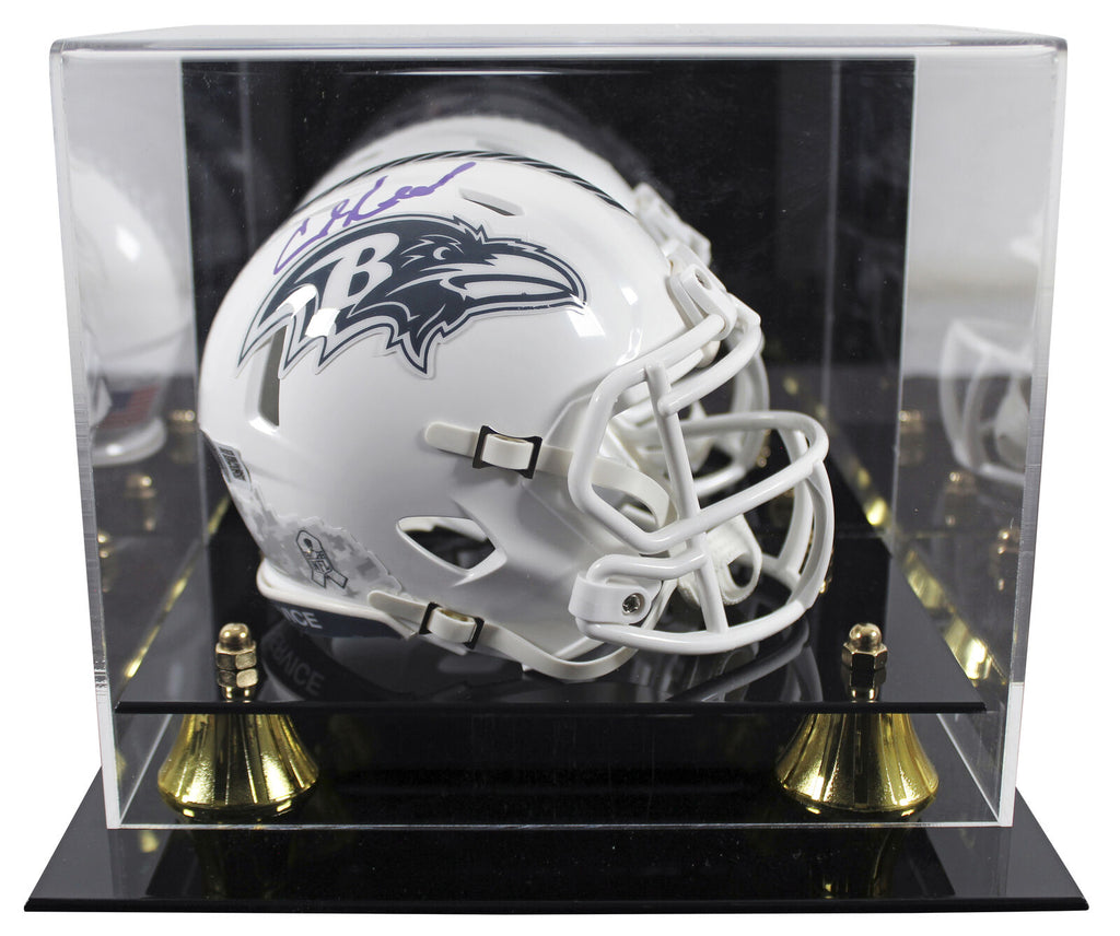 This Autographed Alternate 2024 Salute To Service III Speed Mini Helmet W/ Uv Mirrored Back Acrylic Display Case has been Personally Signed by Ed Reed of the Baltimore Ravens. This item is 100% Authentic to include a hologram by Beckett Authentication Services. This item will come with an affixed Beckett Authentication Services (BAS) authentication sticker, which includes a scannable QR code to verify authenticity. Please note that Beckett no longer provides serial-numbered COA cards, and the attached BAS sticker will serve as the complete authentication for this item. This is a BAS Witnessed Protection Program item which means a Beckett Authentication Service representative was present when this item was being signed. We conducted an autograph signing with Ed Reed where multiples of the same item were signed. While the photographs are representative of this item, the size, placement and strength of the signature may vary. Each item is hand signed, therefore, each autograph is unique. This item can be verified through BAS Witnessed.