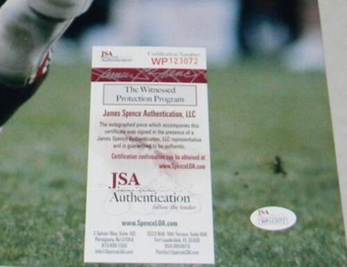 Eddie George, former Heisman Trophy winning running back for the Ohio State Buckeyes, has hand signed this 16x20 photo at a private signing. He included the inscription "Heisman 1995". This item comes with a certificate of authenticity (COA) from JSA - James Spence Authentication and was signed in the presence of one of their representatives. You will receive a serial-numbered COA along with a matching serial-numbered sticker on the photo. The authenticity can be verified online by entering the serial number.Item pictured may not be the exact item you will receive. It will be similar quality, and we guarantee your satisfaction.