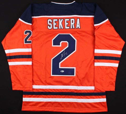 Andrej Sekera Signed Oilers Jersey (Beckett COA) 71st Overall Pk 2004 NHL Draft