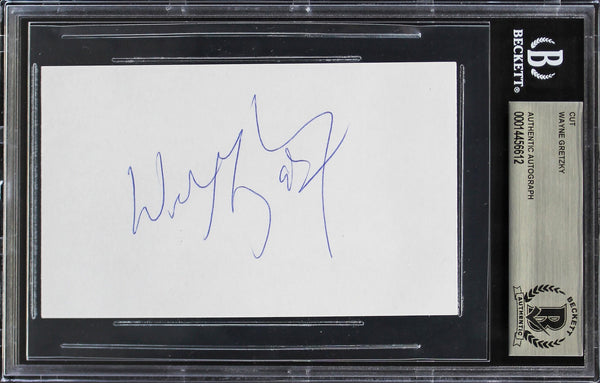 This Autographed 3x5 Cut Signature has been Personally Signed by Wayne Gretzky of the Edmonton Oilers. This item is 100% Authentic, it comes slabbed and authenticated by Beckett Authentication Services. The authenticity can be verified on Beckett Authentication Services website.
