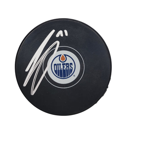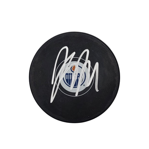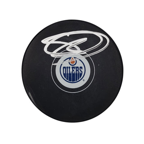 Taylor Hall was selected first overall by the Edmonton Oilers in the 2010 NHL Entry Draft. Taylor Hall made his NHL debut on October 7, 2010, as the Oilers defeated arch-rivals, the Calgary Flames at Rexall Place. Hall's first NHL point, an assist, came in his second game, against the Florida Panthers on October 10, 2010. On October 17, 2013, Hall broke Wayne Gretzky's previous record of two goals in nine seconds by scoring two in eight. Gretzky congratulated him shortly after. Check out this unique, eye-catching display piece spotlighting the #1 overall pick of the 2010 NHL draft. It's signed by Taylor Hall and placed in an acrylic display with a picture of Taylor Hall in the background.
