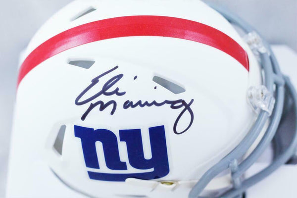 Eli Manning Autographed New York Giants Flat White Speed Mini Helmet - Fanatics Auth *Black This is a hand autograph of Eli Manning of the New York Giants on a Riddell Football Flat White Speed Mini Helmet. This item has a Fanatics Authentication, which comes with a numbered sticker and a matching Fanatics Certificate of Authenticity. You can view this item on the Fanatics Authentication website. It was signed either at a public autograph appearance or a private signing. This is a stock photo of the item. Although you may not receive this exact item, the item you receive is virtually identical and brand new in great shape.