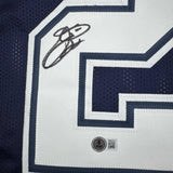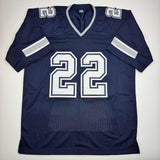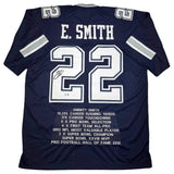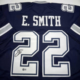 Autographed/Signed Emmitt Smith Dallas Blue Stat Football Jersey Beckett BAS COA Jersey has no brand names or logos. This is a custom jersey and was not manufactured by or in any manner associated with any professional sports league or manufacturer. This custom jersey carries no professional sports league designation. The item is intended to be an autographed collectible. The custom jersey displays the name and number of the player. This item in no way is affiliated with or connected to any professional sports organization. Size is XL.