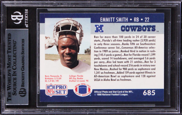 Cowboys Emmitt Smith "HOF 2010" Signed 1990 Pro Set #685 Card Rookie BAS Slabbed