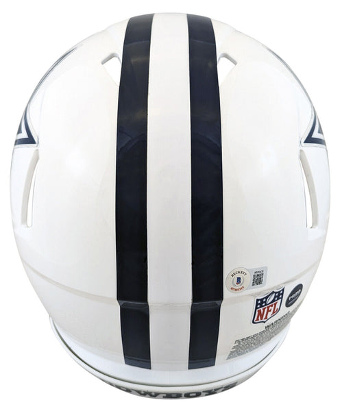 Cowboys Emmitt Smith Signed '22 Alt White Full Size Speed Proline Helmet BAS Wit