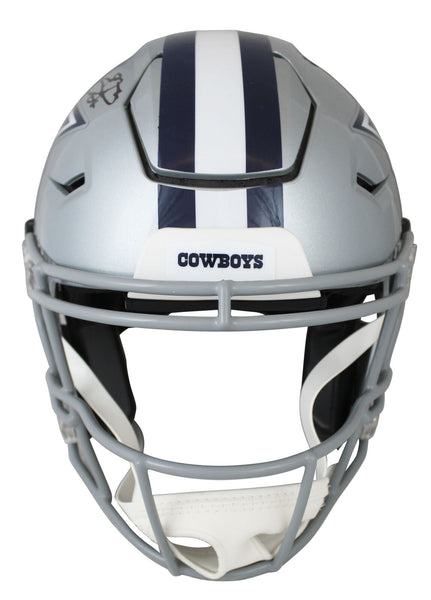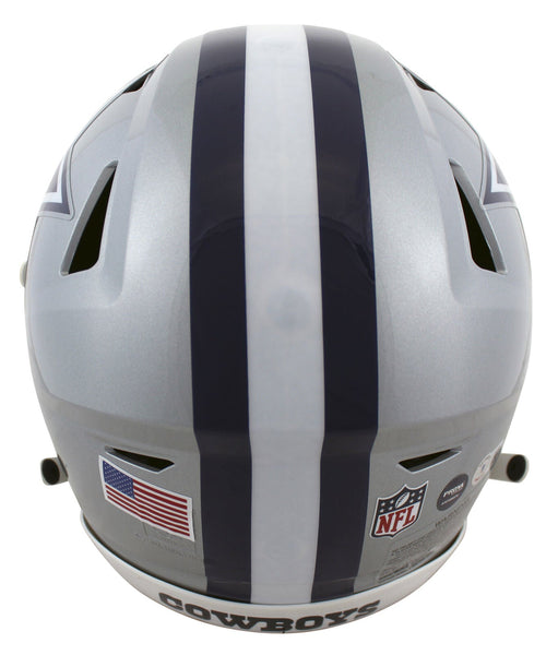 This Autographed Authentic Riddell Speed Flex Full Size Helmet with the inscription of "HOF 2010" has been Personally Signed by Emmitt Smith of the Dallas Cowboys. This item may come with the new Beckett Authentication hologram that has a scannable QR code rather than the traditional COA. If you would like to have a COA, you are welcome to reach out to Beckett for a printed certification once you receive your item. This is a BAS Witnessed Protection Program item which means a Beckett Authentication Service representative was present when this item was being signed. This is a stock item. We conducted an autograph signing with Emmitt Smith and we have several of these available. The one you will receive will be of equal quality to the one pictured. This item can be verified through BAS Witnessed.