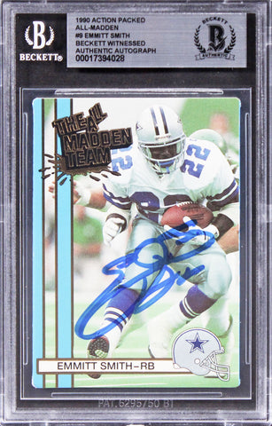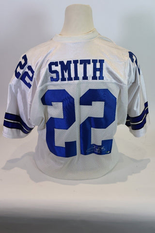 This Autographed Riddell Full Size Speed Rep Helmet W/ Uv Mirrored Back Acrylic Display Case has been Personally Signed by Emmitt Smith of the Dallas Cowboys. This item is 100% Authentic to include a hologram by Beckett Authentication Services. This item will come with an affixed Beckett Authentication Services (BAS) authentication sticker, which includes a scannable QR code to verify authenticity. Please note that Beckett no longer provides serial-numbered COA cards, and the attached BAS sticker will serve as the complete authentication for this item. This is a BAS Witnessed Protection Program item which means a Beckett Authentication Service representative was present when this item was being signed. We conducted an autograph signing with Emmitt Smith where multiples of the same item were signed. While the photographs are representative of this item, the size, placement and strength of the signature may vary. Each item is hand signed, therefore, each autograph is unique. This item can be verified through BAS Witnessed.