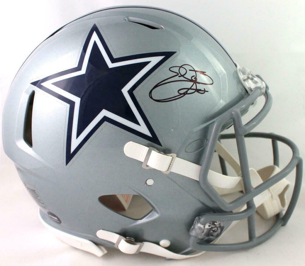 Emmitt Smith Autographed Dallas Cowboys F/S Speed Authentic Helmet - Beckett W Hologram *Black This is an Emmitt Smith of the Dallas Cowboys hand autographed Riddell Speed Authentic full size helmet. This item has a Beckett Witnessed Authentication, which comes with a numbered hologram and a QR code for verification. You can view this item on the Beckett Authentication website, it shows when and where the item was signed. It was signed either at a public autograph appearance or a private signing. This is a stock photo of the item. Although you may not receive this exact item, the item you receive is virtually identical, brand new, and in great shape.