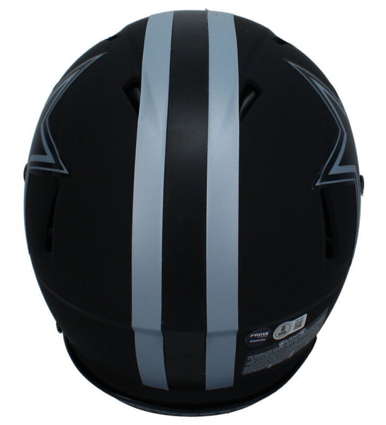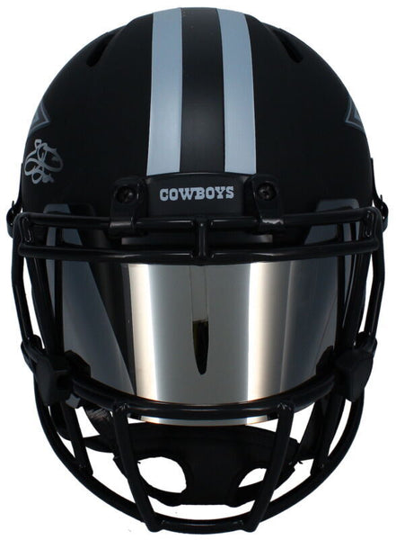 This authentic eclipse speed helmet has been personally hand-signed by Emmitt Smith. It is officially licensed by the National Football League and comes with an individually numbered, tamper-evident hologram from Beckett. To ensure authenticity, the hologram can be reviewed online. This process helps to ensure that the product purchased is authentic and eliminates any possibility of duplication or fraud.Also included with this helmet is a custom visor.