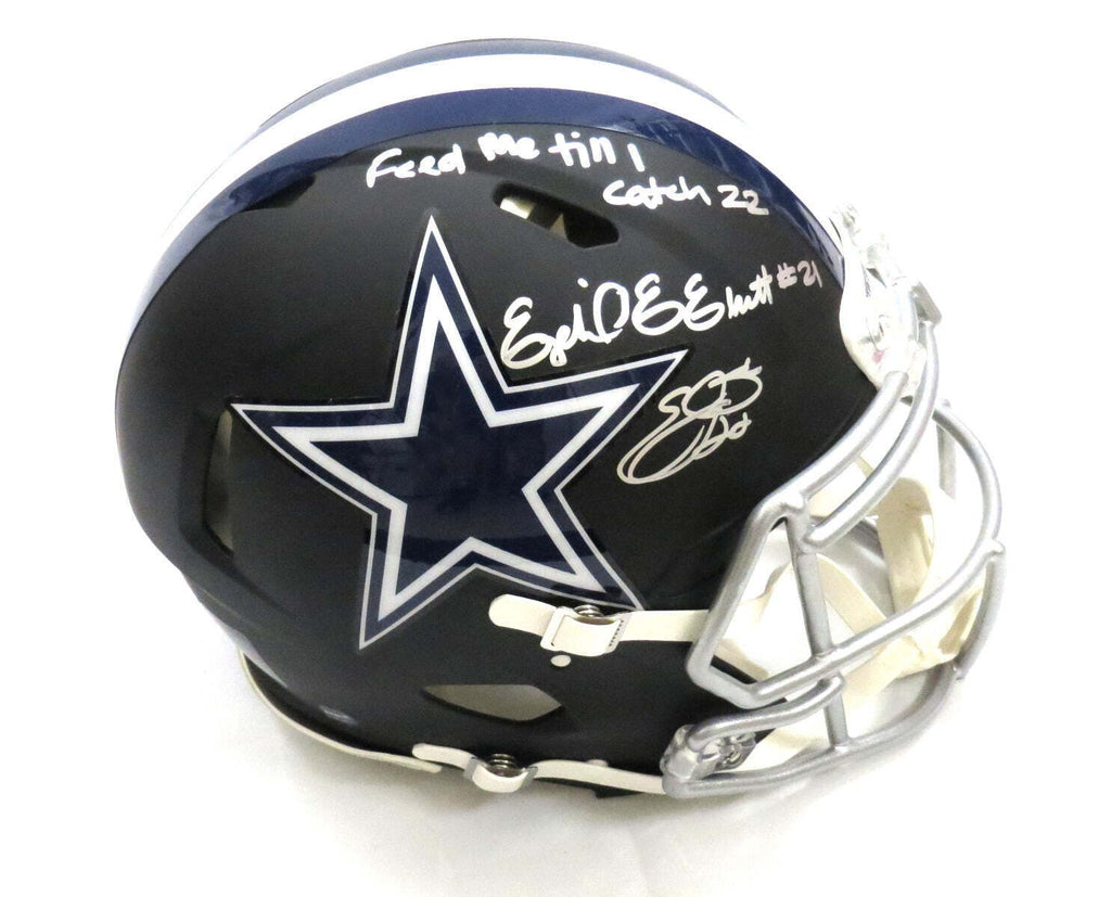 Emmitt Smith & Ezekiel Elliott Signed Dallas Cowboys Flat Black Speed Helmet BAS