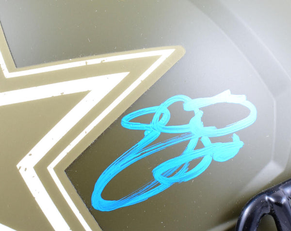 Emmitt Smith Autographed F/S Dallas Cowboys Salute to Service Speed Authentic Helmet-Beckett W Hologram *Blue This is a Hand Autograph of Emmitt Smith of the Dallas Cowboys on a Riddell Football Full Size Salute to Service Speed Authentic Helmet. This item has a Beckett Witness Authentication, which comes with a Beckett numbered hologram and a QR code for verification. You can view this item on the Beckett website, it shows when and where the item was signed. It was signed either at a public autograph appearance or a private signing. This is a stock photo of the item. Although you may not receive this exact item, the item you receive is virtually identical and brand new in great shape.