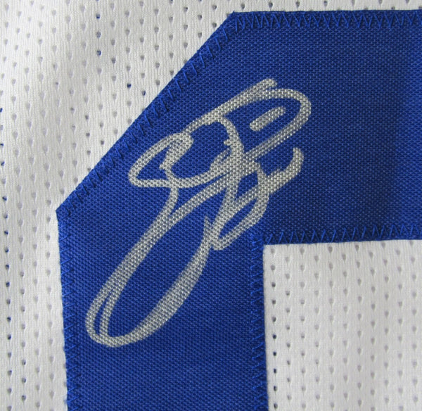 Emmitt Smith HOF Autographed White Custom Football Jersey Dallas Cowboys Size XL. This jersey is authenticated by PROVA and includes their Tamper-proof Sticker.