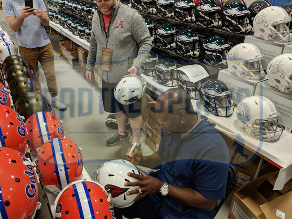 An Arizona Cardinals Current Authentic NFL Helmet hand signed by Emmitt Smith. The item and signature are in excellent condition - Emmitt is a Super Bowl Champion and Class of 2010 NFL Hall of Fame Inductee - AUTHENTICATION: The item is accompanied by a Certificate of Authenticity - Serial Numbered and Databased Hologram - Picture of Emmitt from the Signing - Emmitt Smith Player Hologram -