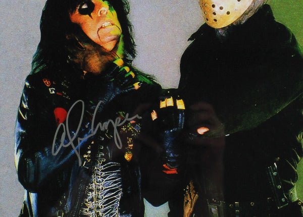 An Alice Cooper Framed 11x14 Photo - Being Choked by Jason V hand signed by Alice Cooper. The item and signature are in excellent condition. The frame measures approximately 19" x 22". Alice Cooper is a singer, songwriter and actor. His career spans over 50 years. AUTHENTICATION: The item is accompanied by a JSA Certificate of Authenticity - JSA Serial Numbered & Databased Hologram.