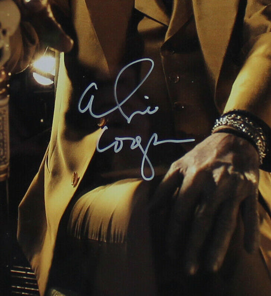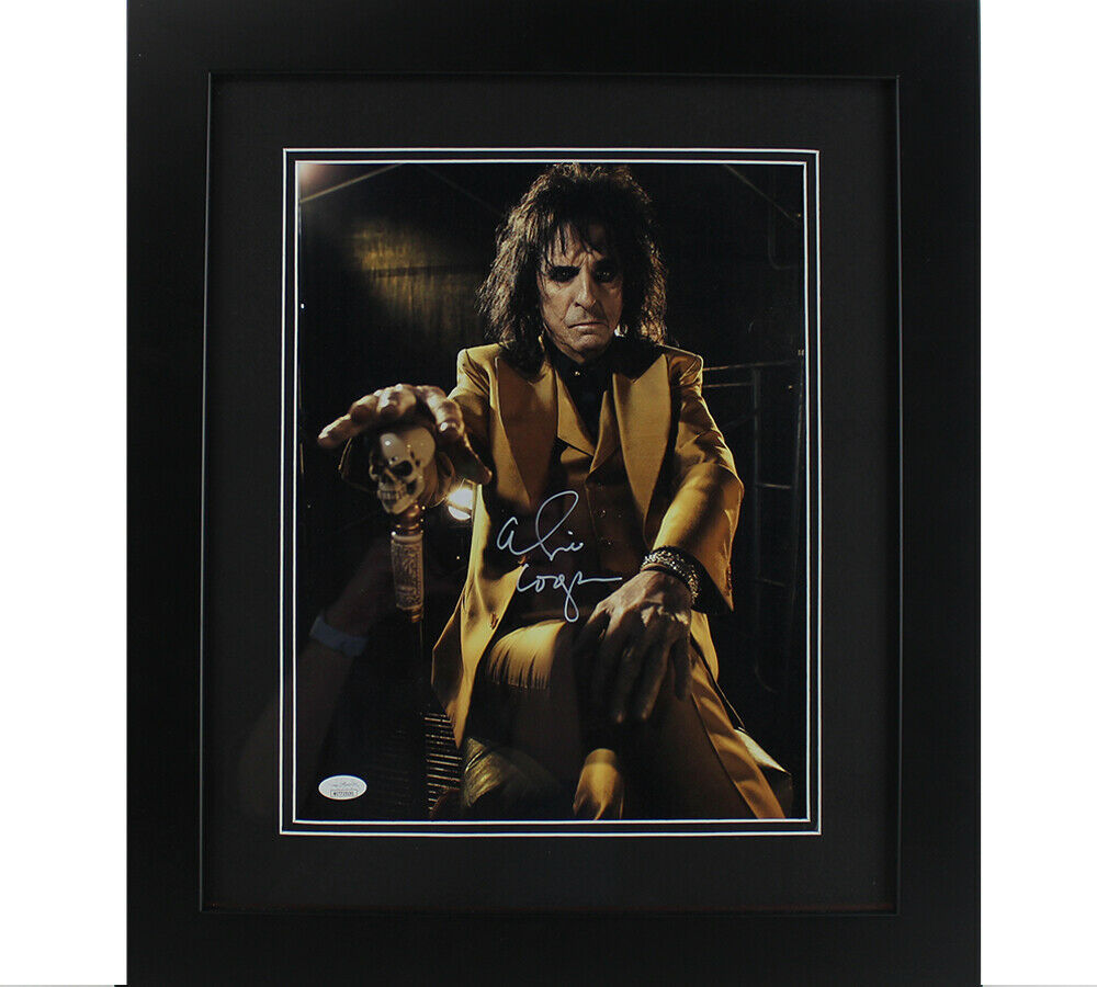 An Alice Cooper Framed 11x14 Photo - Sitting Legs Crossed with Cane hand signed by Alice Cooper. The item and signature are in excellent condition. The frame measures approximately 19" x 22". Alice Cooper is a singer, songwriter and actor. His career spans over 50 years. AUTHENTICATION: The item is accompanied by a JSA Certificate of Authenticity - JSA Serial Numbered & Databased Hologram.