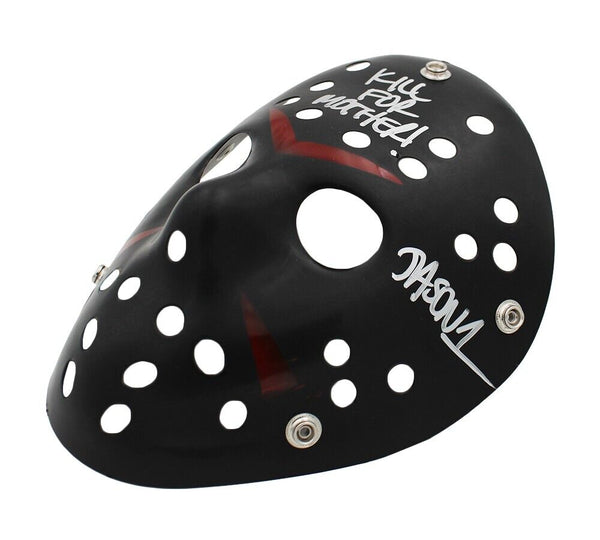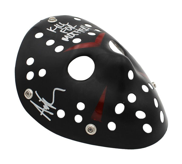 A Friday the 13th Black Costume Mask hand signed by Ari Lehman. The item and signature are in excellent condition. In addition to signing his name, Ari also inscribed "Jason 1" & Kill For Mother" on the item. Ari is an actor, performing artist & composer. He is known for playing the child Jason Voorhees in the Friday the 13th horror movies. AUTHENTICATION: Your item is tagged with a SmarTag powered by Prova Technology, which gives you digital access to your items authentication records, which includes a proof picture from the signing.