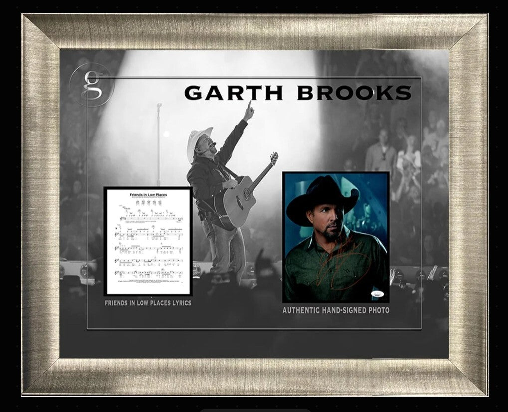 Elevate your country music collection with our exclusive Garth Brooks Autographed Framed Art featuring the iconic lyrics to "Friends in Low Places"! This collector's piece is more than just memorabilia; it's a timeless tribute to one of the greatest country music legends. **Key Features:**- **Authentic Autograph:** Personally signed by Garth Brooks, this framed (34"Wx28.5"Hx1"D outer dimensions) artwork adds an authentic touch to your collection.- **Lyrics to Classic Hit:** Featuring the unforgettable lyrics to "Friends in Low Places," this piece captures the essence of Garth Brooks' most iconic song.- **Premium Framing:** Expertly framed for an elegant presentation, this artwork is ready to take pride of place in your home, office, or music room.- **Limited Edition:** Each autographed framed art is part of a limited edition, making it a rare and valuable addition for passionate Garth Brooks fans. **Sing Along with a Legend!**Immerse yourself in the soulful lyrics of "Friends in Low Places" with this Garth Brooks Autographed Framed Art. It's not just a piece of memorabilia; it's a celebration of country music greatness. **Limited Stock - Secure Yours Now!*This is your exclusive opportunity to own a piece signed by Garth Brooks. Secure your autographed framed art now and proudly display your love for country music and the legendary Garth Brooks! #GarthBrooks #CountryMusic #AutographedArt #FriendsInLowPlaces #LimitedEdition