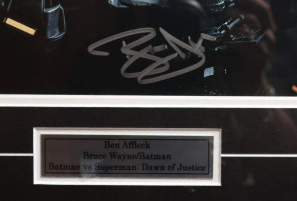Ben Affleck Autographed Batman vs Superman: Dawn of Justice Framed Photo Step into the DC Extended Universe with this stunning Ben Affleck autographed photo from the groundbreaking film "Batman vs Superman: Dawn of Justice." This premium collectible captures Affleck's powerful portrayal of the Dark Knight in one of the most anticipated superhero films of all time. Product Highlights: Authentic Signature: Hand-signed by Ben Affleck himself Iconic Film: From Batman vs Superman: Dawn of Justice (2016) Premium Framing: Professional 34" x 34" frame ready for display Museum Quality: High-resolution photo with protective glass Investment Grade: Perfect for serious movie memorabilia collectors About Ben Affleck's Batman: Ben Affleck brought a darker, more experienced Batman to the screen in Zack Snyder's vision of the DC Universe. His portrayal of the seasoned Dark Knight facing off against Superman created one of cinema's most epic superhero confrontations, making this autographed piece a cornerstone of modern DC collectibles. Perfect For: DC Comics and Batman enthusiasts Movie memorabilia collectors Ben Affleck fans Home theater or man cave display Investment portfolio addition Gift for superhero movie fans Display Specifications: Frame Size: 34" x 34" | Ready to Hang: Professional mounting included | Protection: UV-resistant glass This authenticated Ben Affleck Batman collectible represents a pivotal moment in superhero cinema history. Own a piece of the DC Extended Universe and display your passion for one of the most iconic Batman portrayals ever filmed. Limited availability - secure this exclusive piece today!
