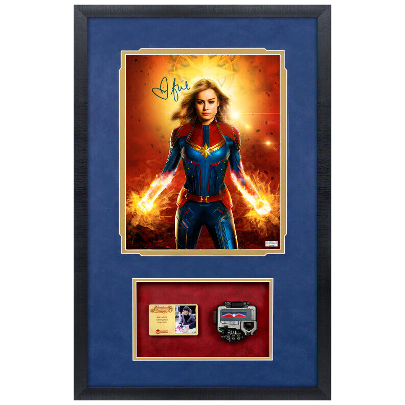 From the Framing Studios of Celebrity Authentics is this stunning Framed Display (approximately 18" x 22" overall size) featuring a beautifully autographed photo of Brie Larson as Captain Marvel and a stunningly detailed screen accurate replica by Hot Toys of the pager used by Nick Fury to summon Captain Marvel! Photo has been personally hand-signed by Brie during her signing with Celebrity Authentics and ships affixed with the Celebrity Authentics serial-numbered and tamper evident Authentication Hologram. Includes Celebrity Authentics Certificate of Authenticity featuring picture of Brie signing photo. Photo is meticulously dry mounted and framed using acid free backing and mat boards with white core for the finest in presentation. UV protective glass with precision cut moulding are used for smooth, clean frame edges, hand assembled in our studio. Additionally, a protective back cover is used to seal the piece with corner bumpers applied to protect your walls, providing adequate air flow. A hanger is affixed to complete the finished collectible. Each framed photo is carefully wrapped for shipping with double protective corners and cushioning to help ensure the item's safe arrival. Celebrity Authentics Framing Studios - acclaimed as the industry's finest! Please note: with multiples signed by the actor, a sample photo is used from stock to represent what you will receive. Exact autograph size and placement may vary.