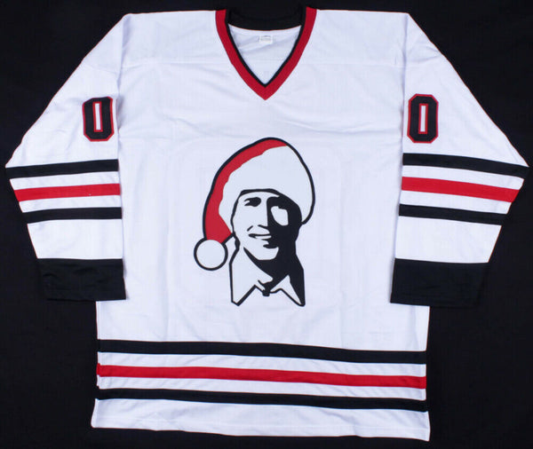 Custom on-ice style jersey. Everything sewn on, size XL. Hand-signed in silver paint pen by Chevy Chase (Clark W. Griswold).Based on John Hughes' short story "Christmas '59" that was published in National Lampoon, it tells the story of the Griswold family spending Christmas vacation at home with their relatives and the ensuing mayhem.The film performed well at the box office, grossing $73.3 million against a $25 million budget while receiving generally mixed reviews from critics. It is now regarded as a classic Christmas film. The autograph includes an official Beckett Authentication Services serially numbered hologram and matching COA for authenticity purposes. The signing was witnessed by Beckett. Authentication: Beckett COA