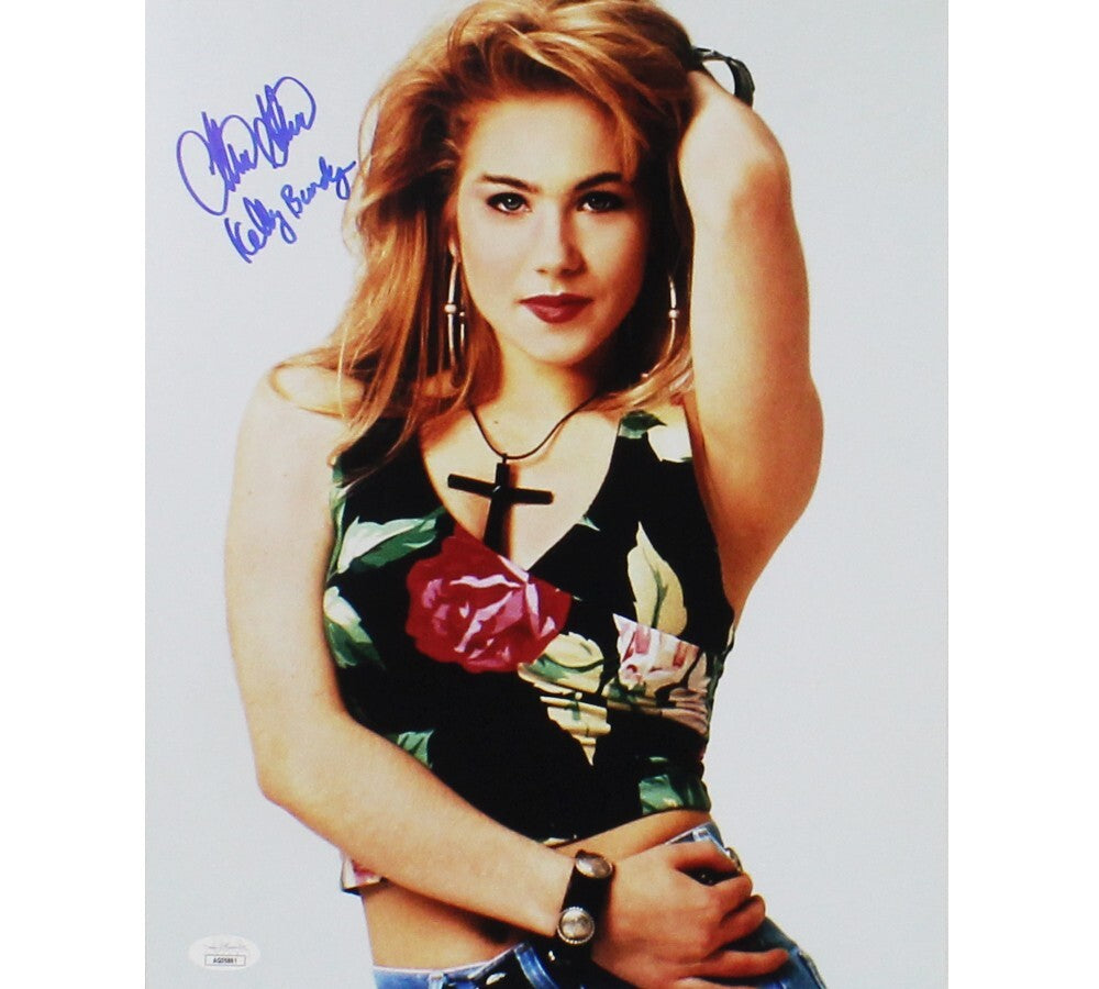 A Married With Children Black Cross Unframed 11x14 Photo hand signed by Christina Applegate. The item and signature are in excellent condition. In addition to signing her name, Christina inscribed "Kelly Bundy" on the item. Christina Applegate is an Emmy-winning actress best known for her role as Kelly Bundy on Married... With Children and acclaimed performances in Samantha Who?, Dead to Me, and Friends. She has starred in hit films like Anchorman, The Sweetest Thing, and Bad Moms, and was honored with a star on the Hollywood Walk of Fame in 2022. AUTHENTICATION: The item is accompanied by a JSA Certificate of Authenticity - JSA Serial Numbered Hologram -