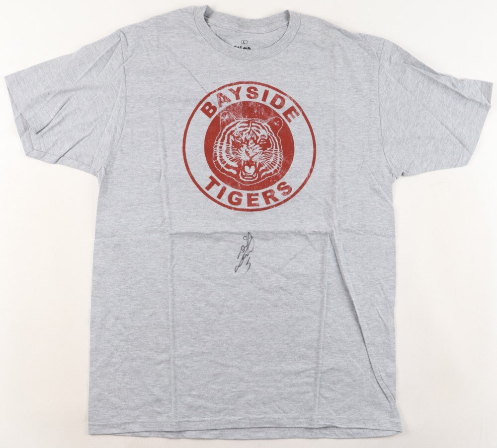 Saved By The Bell t-shirt. Everything printed on, size Large. Hand-signed by Dustin Diamond (D. 2021).The autograph(s) includes an official James Spence Authentication (JSA) hologram and QR Code Card for authenticity purposes.Authentication: JSA Hologram with QR Code Card