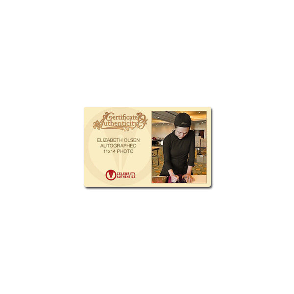 This 11x14 photo of Marvel's Scarlet Witch has been personally hand-signed by Elizabeth Olsen during her signing with Celebrity Authentics. Wanda is initially depicted as a Sokovia refugee who, along with her twin brother Pietro, volunteers to be experimented on by Hydra. The Mind Stone amplifies her natural telekinetic and energy manipulation abilities known as Chaos magic. Wanda initially comes into conflict with the Avengers but later joins them and becomes one of its most powerful members. Photo ships affixed with Celebrity Authentics serial-numbered and tamper evident Authentication Hologram and includes Celebrity Authentics Certificate of Authenticity featuring picture of Elizabeth signing.Framing: Photo is meticulously dry mounted and framed using acid free backing and mat boards with white core for the finest in presentation. UV protective glass with precision cut moulding are used for smooth, clean frame edges, hand assembled in our studio. Additionally, a protective back cover is used to seal the piece with corner bumpers applied to protect your walls, providing adequate air flow. A hanger is affixed to complete the finished collectible. Each framed photo is carefully wrapped for shipping with double protective corners and cushioning to help ensure the item's safe arrival. Celebrity Authentics Framing Studios - acclaimed as the industry's finest!Please note: with multiples signed by the actor, a sample photo is used from stock to represent what you will receive. Exact autograph size and placement may vary.