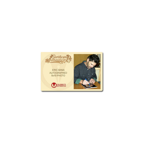 This 8x10 photo from Chopper of Eric Bana as Mark Brandon Chopper Read has been personally hand-signed by Eric during his signing with Celebrity Authentics. Eric portrayed Chopper, legendary criminal who wrote his autobiography while serving a murder sentence in prison. Ships affixed with Celebrity Authentics serial-numbered and tamper evident Authentication Hologram and includes Celebrity Authentics Certificate of Authenticity featuring picture of Eric signing photo. Please note: with multiples signed by the actor, a sample photo is used from stock to represent what you will receive. Exact autograph size and placement may vary.