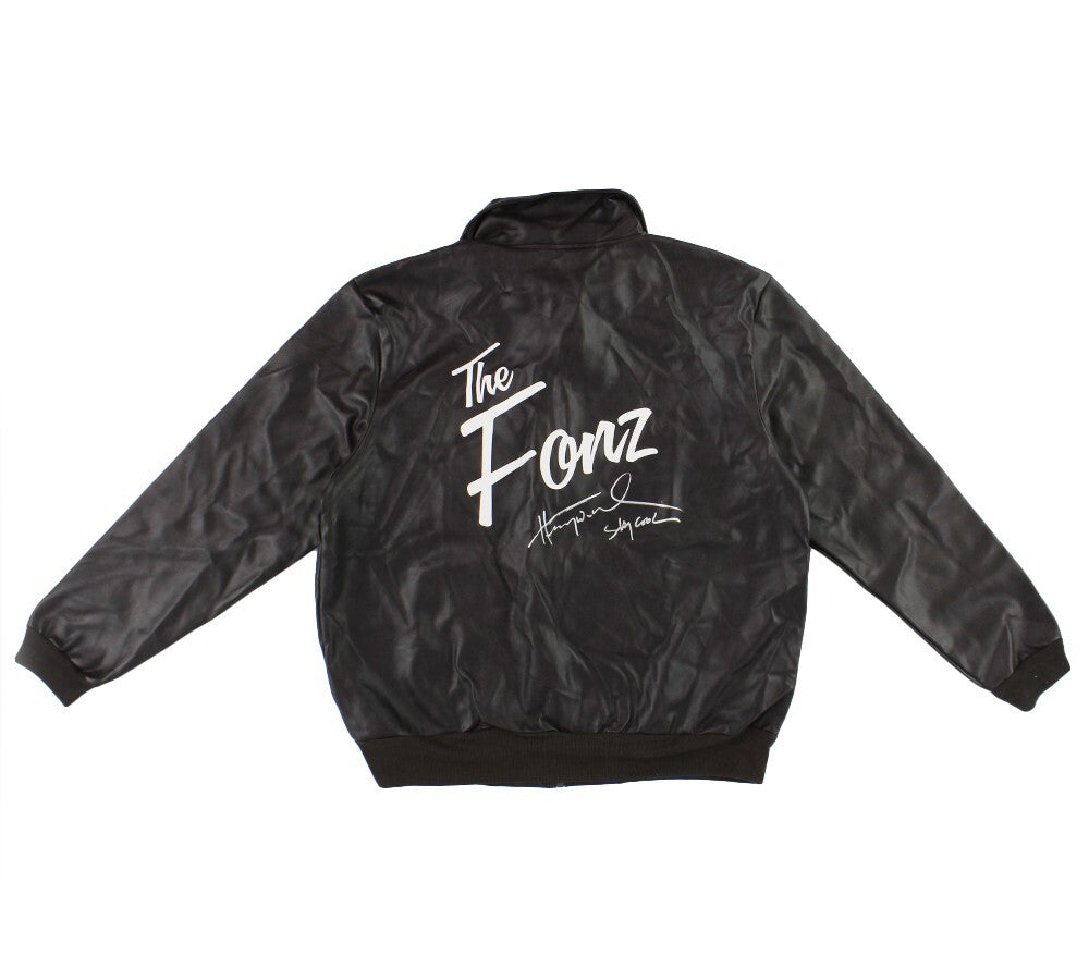 A Happy Days Officially Licensed The Fonz Black Jacket hand signed by Henry Winkler. The item and signature are in excellent condition. In addition to signing his name, Henry inscribed "Stay Cool" on the item. Henry is an American actor, comedian, children's book author, executive producer, and director. Henry's American television series Happy Days winning 2 Golden Globe Awards and 3 Emmy Award nominations for Outstanding Leader Actor in a Comedy Series for the role. Henry also earned a nomination for the Golden Globe Award for best Actor. AUTHENTICATION: The item is accompanied by a JSA Certificate of Authenticity - JSA Serial Numbered Hologram -