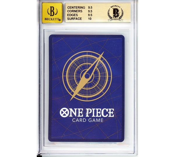 A One Piece Monkey D. Luffy Live Action P-055 Graded Encapsulated Game Card hand signed by Inaki Godoy. The item and signature are in excellent condition and have received a Raw Grade of 9.5 GM MT and Auto Grade 10. AUTHENTICATION: The item is encapsulated in a tamper-evident case with a Beckett databased serial number.