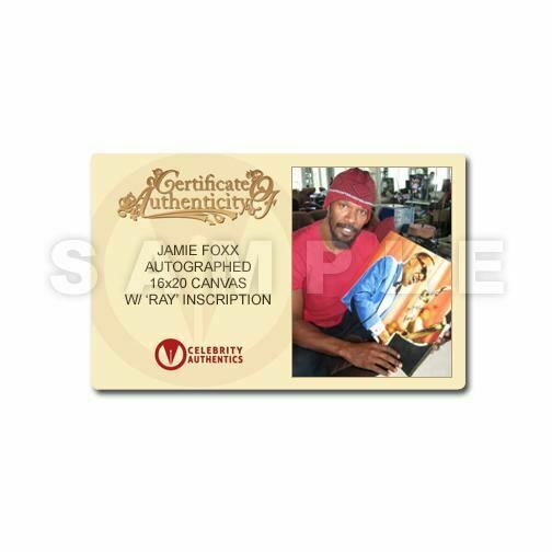 This stunning 16x20 canvas giclee from 2004's Ray has been personally hand-signed by Jamie Foxx during his signing with Celebrity Authentics. Jamie mesmerized the world with his amazing performance as the legendary rhythm and blues artist, Ray Clarles in 2004's Ray, capturing him an Academy Award along with Golden Globe, BAFTA Screen Actors Guild and Critics Choice Awards. Canvas is gallery wrapped featuring a striking image of Mr. Foxx at the piano in perfect Ray Charles form. This statement piece is limited with Jamie adding a Ray inscription to the canvas. Produced with the highest quality inks and printed on the finest canvas with a rich, matte luster finish, wrapped around a wooden stretcher frame with image wrapping onto the sides for a clean, modern look, finished and ready-to-hang. Ships affixed with Celebrity Authentics serial-numbered, tamper evident Authenticity Hologram and includes matching Celebrity Authentics Certificate of Authenticity featuring picture of Jamie signing canvas. Please note: with multiples signed by the actor, a sample photo is used from stock to represent what you will receive. Exact autograph size and placement may vary.