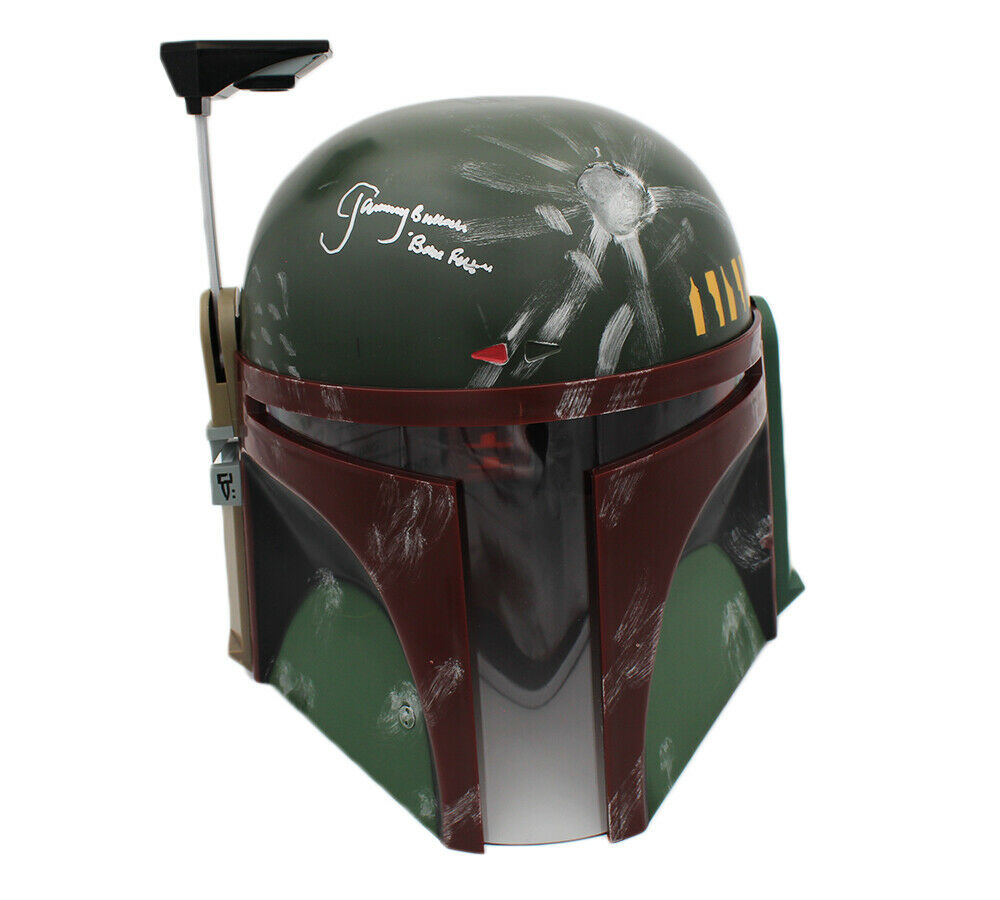 A Star Wars Deluxe Edition Boba Fett Mask hand signed by Jeremy Bulloch. The item and signature are in excellent condition. In addition to signing his name, Jeremy also inscribed "Boba Fett" on the item - Jeremy played one of the most iconic characters in a blockbuster movie series that redefined the Science Fiction movie industry. AUTHENTICATION: The item is accompanied by a Certificate of Authenticity - Serial Numbered and Databased Hologram