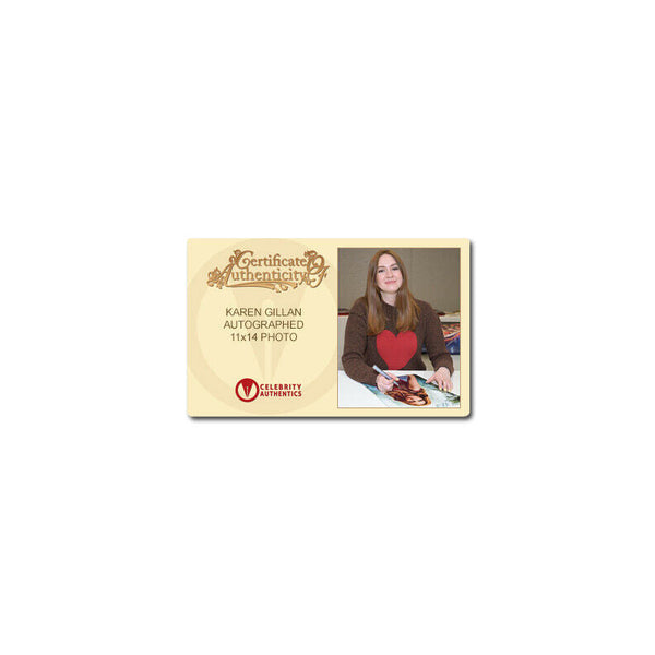 This 2019 Jumanji The Next Level Ruby 11x14 Photo has been personally autographed by Karen Gillan during her signing with Celebrity Authentics. When Spencer goes back into the fantastical world of Jumanji, pals Martha, Fridge and Bethany re-enter the game to bring him home. But the game is now broken -- and fighting back. Everything the friends know about Jumanji is about to change, as they soon discover there's more obstacles and more danger to overcome. Ships affixed with Celebrity Authentics serial-numbered Authentication hologram and includes Celebrity Authentics Certificate of Authenticity featuring picture of Karen signing photo.Framing: Photo is meticulously dry mounted and framed using acid free backing and mat boards with white core for the finest in presentation. UV protective glass with precision cut moulding are used for smooth, clean frame edges, hand assembled in our studio. Additionally, a protective back cover is used to seal the piece with corner bumpers applied to protect your walls, providing adequate air flow. A hanger is affixed to complete the finished collectible. Each framed photo is carefully wrapped for shipping with double protective corners and cushioning to help ensure the item's safe arrival. Celebrity Authentics Framing Studios - acclaimed as the industry's finest! Please note: with multiples signed by the actor, a sample photo is used from stock to represent what you will receive. Exact autograph size and placement may vary.