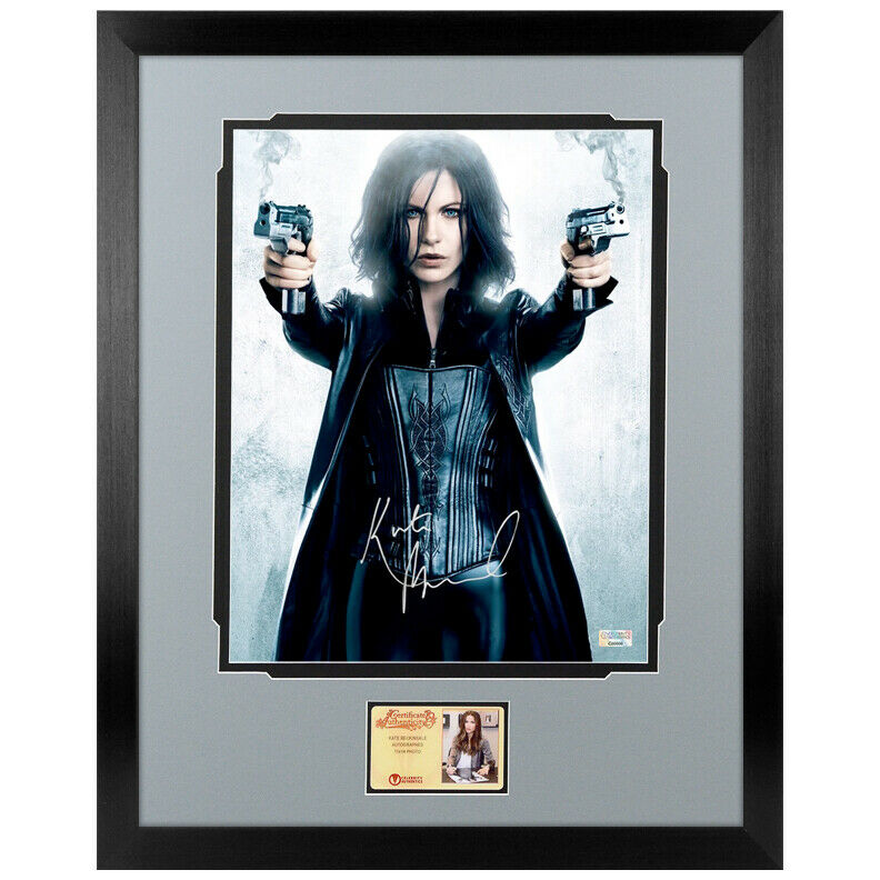 Celebrity Authentics is the exclusive autograph partner of Kate Beckinsale. Please be aware most other online autographs purported to be Ms. Beckinsale's are forgeries. Ms. Beckinsale has only signed with Celebrity Authentics so be sure the item you choose is affixed with the Celebrity Authentics Authentication Hologram for her genuine signature.From the Framing Studios of Celebrity Authentics is this 11x"14" Framed Photo (approximately 18"x22" finished) of Kate Beckinsale as Death Dealer Selene from Underworld: Awakening, personally hand-signed by Kate during her signing with Celebrity Authentics. Ships affixed with the Celebrity Authentics serial-numbered and tamper evident Authentication Hologram and includes Celebrity Authentics Certificate of Authenticity featuring picture of Kate signing photo. Please note, due to their packaging, to help ensure their safe delivery we are unable to combine framed photos with other items. Stock image used for product images. Item ships with clean, unsmudged autograph in similar location. Framing: Photo is meticulously dry mounted and framed using acid free backing and mat boards with white core for the finest in presentation. UV protective glass with precision cut moulding are used for smooth, clean frame edges, hand assembled in our studio. Additionally, a protective back cover is used to seal the piece with corner bumpers applied to protect your walls, providing adequate air flow. A hanger is affixed to complete the finished collectible. Each framed photo is carefully wrapped for shipping with double protective corners and cushioning to help ensure the item's safe arrival. Celebrity Authentics Framing Studios - acclaimed as the industry's finest! Please note: with multiples signed by the actor, a sample photo is used from stock to represent what you will receive. Exact autograph size and placement may vary.