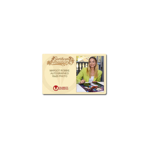 Celebrity Authentics is the exclusive autograph partner of Margot Robbie. Please be aware most other online autographs purported to be Ms. Robbie's are forgeries. Ms. Robbie has only signed with Celebrity Authentics so be sure the item you choose is affixed with the Celebrity Authentics Authentication Hologram for her genuine signature. This 16x20 glossy photo of Margot Robbie as the the one and only Harley Quinn from DC Comics' 2016 Suicide Squad has been personally hand-signed by Margot during her exclusive autograph signing with Celebrity Authentics. Good? Bad? Harley doesn't really care about all of that. She really just does what she feels like doing. If that means heading on a one-woman crime spree in Gotham, that's what she's gonna do! If that means fighting a few gangsters and supervillains with her trusty baseball bat? Well, she's going to go ahead and do that too. Batman doesn't always like what she does, and these days, neither does The Joker. But you know what? Who cares? She's Harley freakin' Quinn, and no one can tell her what to do! Ships affixed with Celebrity Authentics serial-numbered and tamper evident Authentication Hologram and includes Celebrity Authentics Certificate of Authenticity featuring picture of Margot signing photo.Framing: Photo is meticulously dry mounted and framed using acid free backing and mat boards with white core for the finest in presentation. UV protective glass with precision cut moulding are used for smooth, clean frame edges, hand assembled in our studio. Additionally, a protective back cover is used to seal the piece with corner bumpers applied to protect your walls, providing adequate air flow. A hanger is affixed to complete the finished collectible. Each framed photo is carefully wrapped for shipping with double protective corners and cushioning to help ensure the item's safe arrival. Celebrity Authentics Framing Studios - acclaimed as the industry's finest! Please note: with multiples signed by the actor, a sample photo is used from stock to represent what you will receive. Exact autograph size and placement may vary.