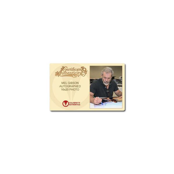 Celebrity Authentics is the exclusive autograph partner of Mel Gibson. Please be aware most other online autographs purported to be Mr. Gibson's are forgeries. Mr. Gibson has only signed with Celebrity Authentics so be sure the item you choose is affixed with the Celebrity Authentics Authentication Hologram for his genuine signature.This 2000 The Patriot 16x20 Photo (approximately 27"x22.5" framed) has been personally hand-signed by Mel Gibson during his signing with Celebrity Authentics. A widowed farmer, with a brave but brutal military past, decides not to join up when the British arrive in 1776. However, when his son enlists and is later captured by the enemy, the former soldier must abandon his new-found pacifist principles in order to rescue his oldest child, and forms a regiment of Carolina patriots, whose guerrilla tactics prove pivotal to the US war effort. Iconic scene photo ships affixed with Celebrity Authentics serial-numbered Authentication hologram and includes Celebrity Authentics Certificate of Authenticity featuring picture of Mel signing photo.Framing: Photo is meticulously dry mounted and framed using acid free backing and mat boards with white core for the finest in presentation. UV protective glass with precision cut moulding are used for smooth, clean frame edges, hand assembled in our studio. Additionally, a protective back cover is used to seal the piece with corner bumpers applied to protect your walls, providing adequate air flow. A hanger is affixed to complete the finished collectible. Each framed photo is carefully wrapped for shipping with double protective corners and cushioning to help ensure the item's safe arrival. Celebrity Authentics Framing Studios - acclaimed as the industry's finest! Please note: with multiples signed by the actor, a sample photo is used from stock to represent what you will receive. Exact autograph size and placement may vary.