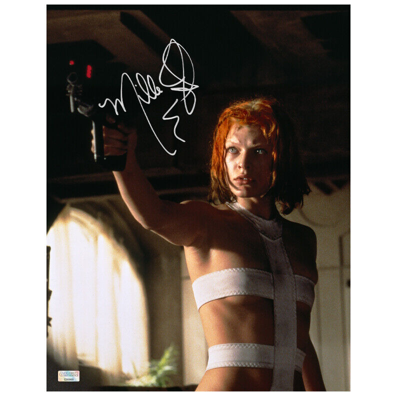 Celebrity Authentics is the exclusive autograph partner of Milla Jovovich. Please be aware most other online autographs purported to be Ms. Jovovich's are forgeries. Ms. Jovovich has only signed with Celebrity Authentics so be sure the item you choose is affixed with the Celebrity Authentics Authentication Hologram for her genuine signature.This 1997 The Fifth Element Leeloo 11x14 Photo of Milla Jovovich as Leeloo has been personally autographed by Milla during her exclusive signing with Celebrity Authentics. In the colorful future, a cab driver unwittingly becomes the central figure in the search for a legendary cosmic weapon to keep Evil and Mr. Zorg at bay. Great scene shot ships affixed with Celebrity Authentics serial-numbered Authentication hologram and includes Celebrity Authentics Certificate of Authenticity featuring picture of Milla signing photo.Please note: with multiples signed by the actor, a sample photo is used from stock to represent what you will receive. Exact autograph size and placement may vary.