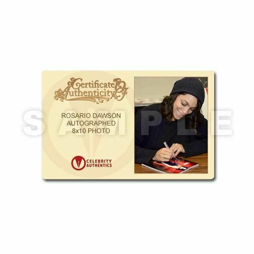 This Clerks II 8x10 photo has been personally hand-signed by Rosario Dawson during her autograph signing with Celebrity Authentics. After a calamity at Dante and Randall's shops sends them looking for new horizons they ultimately settle at Mooby's, in this Kevin Smith comedy. Ships affixed with Celebrity Authentics serial-numbered and tamper evident Authentication Hologram and includes Celebrity Authentics Certificate of Authenticity featuring picture of Rosario signing photo. Please note: with multiples signed by the actor, a sample photo is used from stock to represent what you will receive. Exact autograph size and placement may vary.