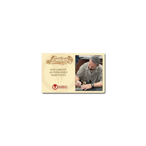 From the 2007 Transformers is this rare Sam Witwicky AllSpark 16x20 Scene Photo personally hand-signed by film star Shia LaBeouf during his signing with Celebrity Authentics. The fate of humanity is at stake when two races of robots, the good Autobots and the villainous Decepticons, bring their war to Earth. The robots have the ability to change into different mechanical objects as they seek the key to ultimate power, but only human Sam Witwicky can save the world from total destruction. Ships affixed with the Celebrity Authentics serial-numbered and tamper evident Authentication Hologram and includes a Celebrity Authentics Certificate of Authenticity featuring a picture of Shia signing the photo. Please note: with multiples signed by the actor, a sample photo is used from stock to represent what you will receive. Exact autograph size and placement may vary.