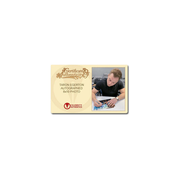 This 8x10 photo of Taron Egerton as the legendary Elton John from Rocketman has been personally hand-signed by Taron during his signing with Celebrity Authentics. Item ships affixed with Celebrity Authentics serial-numbered and tamper evident Authentication Hologram and includes Celebrity Authentics Certificate of Authenticity featuring picture of Taron signing photo. Please note: with multiples signed by the actor, a sample photo is used from stock to represent what you will receive. Exact autograph size and placement may vary.