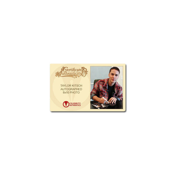This 8x10 photo of Taylor Kitsch as Gambit from Wolverine has been personally hand-signed by Taylor during his signing with Celebrity Authentics. Ships affixed with Celebrity Authentics serial-numbered and tamper evident Authentication Hologram and includes Celebrity Authentics Certificate of Authenticity featuring picture of Taylor signing photo. Please note: with multiples signed by the actor, a sample photo is used from stock to represent what you will receive. Exact autograph size and placement may vary.