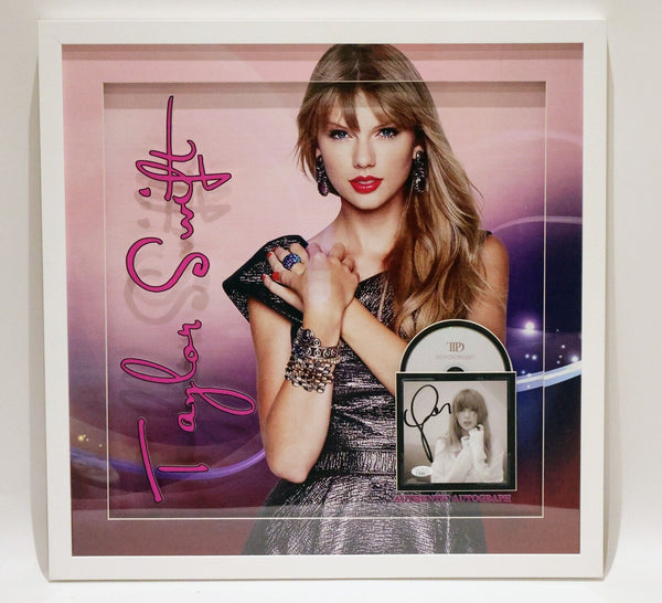 This Taylor Swift autographed CD deluxe is a must-have for any music fan. The 3D framed package includes a DVD cover and is signed by the artist herself, making it a rare and valuable piece of entertainment memorabilia. The autograph has been authenticated by James Spence (JSA), adding to its authenticity and value. This item is an original and unique addition to any collection, perfect for display or gifting.