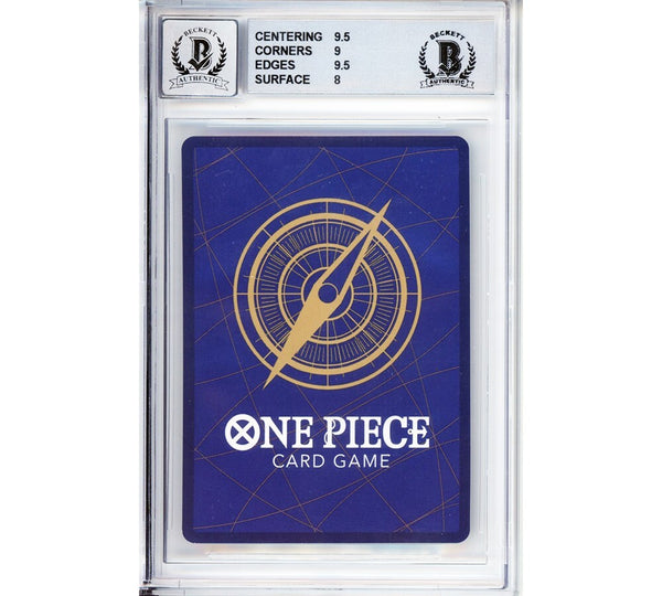 A One Piece Sanji Live Action Edition P-050 Graded Encapsulated Game Card hand signed by Taz Skylar. The item and signature are in excellent condition and have received a Raw Grade of 8.5 NM MT+ and Auto Grade 10. AUTHENTICATION: The item is encapsulated in a tamper-evident case with a Beckett databased serial number.