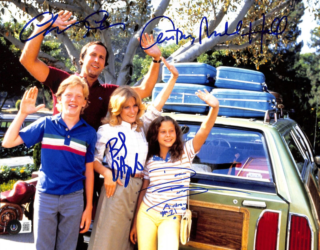 Vacation (4) Chase, D'Angelo, Hall & Barron Signed 11x14 Photo BAS 42028 The number in the listing title is just an inventory sku for our records and is not the authentication number. The item pictured is a stock photo unless otherwise noted. This is a National Lampoon's Vacation 11x14 Photo that was personally autographed by Chevy Chase (Clark), Beverly D'Angelo (Ellen), Anthony Michael Hall (Rusty) & Dana Baron (Audrey #1). Includes a certificate of authenticity from Beckett Authentication Services (BAS) and Denver Autographs.