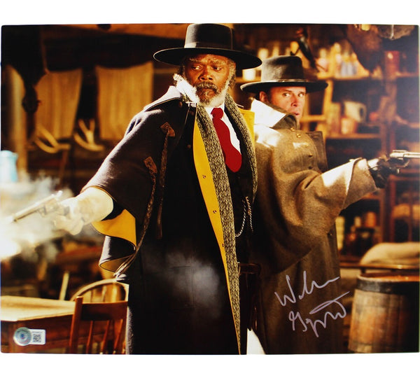 A The Hateful Eight with Samuel L Jackson Unframed 11x14 Photo hand signed by Walton Goggins. The item and signature are in excellent condition. Walton Goggins is a versatile actor known for standout roles in films like Django Unchained, The hateful Eight, Lincoln, Ant-Man and the Wasp, and Tomb Raider. He often plays intense or offbeat characters and has become a frequent collaborator in Quentin Tarantino's films. AUTHENTICATION: The item is accompanied by a Beckett Serial Numbered & Databased Hologram