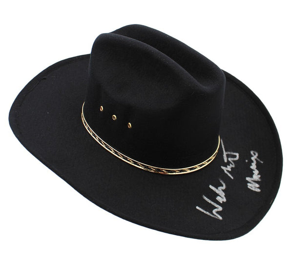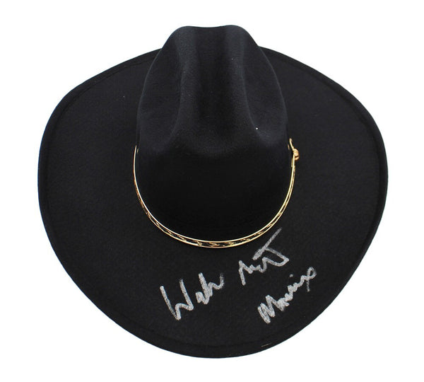 A The Hateful Eight Black Costume Hat hand signed by Walton Goggins. The item and signature are in excellent condition. In addition to signing his name, Walton inscribed "Mannix" on the item. Walton Goggins is a versatile actor known for standout roles in films like Django Unchained, The hateful Eight, Lincoln, Ant-Man and the Wasp, and Tomb Raider. He often plays intense or offbeat characters and has become a frequent collaborator in Quentin Tarantino's films. AUTHENTICATION: The item is accompanied by a Beckett Serial Numbered & Databased Hologram